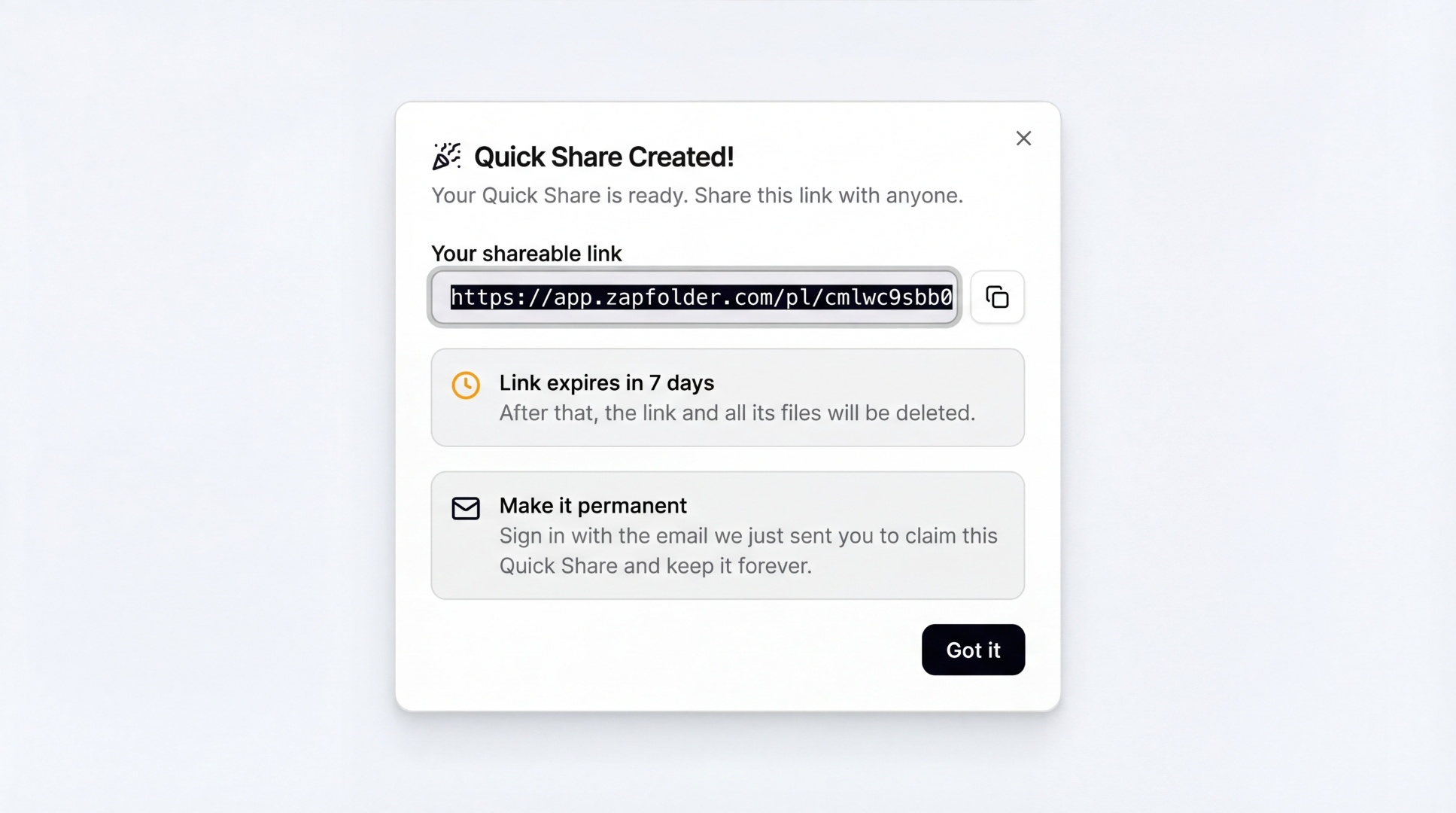 If you want permanent links, version control, and full project delivery features, you can create your free ZapFolder account in seconds.